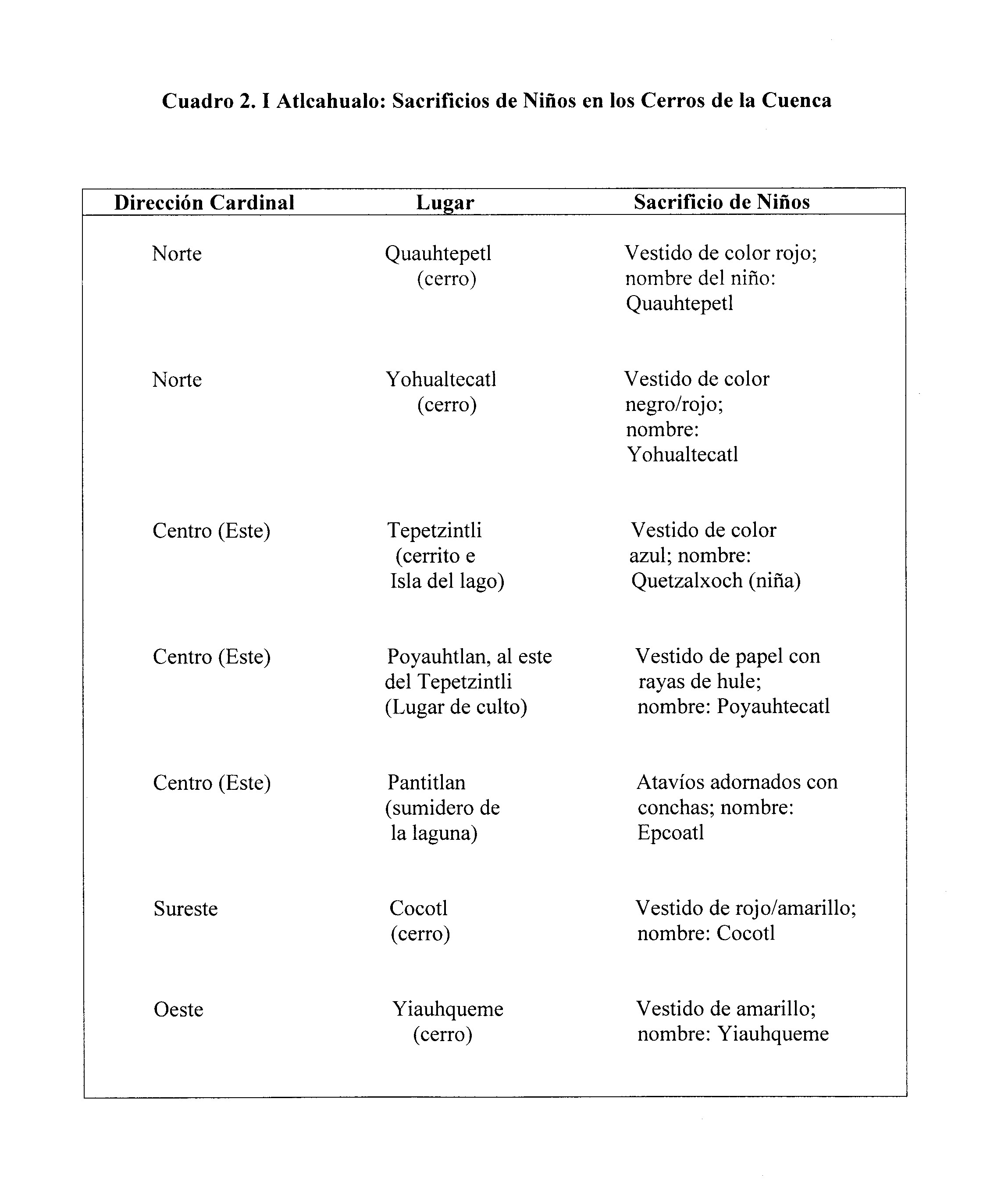 Résumé : Cet article commence par saluer la mémoire de Michel Graulich, qui partageait mon intérêt pour l’étude des fêtes du calendrier mexica. J’y reprends les résultats de nombreuses recherches que j’ai menées sur les fêtes mexicas des dieux de la pluie, ainsi que les sources du xvie siècle qui fournissent des informations détaillées sur la réalisation de rites dans la géographie du bassin de Mexico. L’un des aspects les plus intéressants de ces rites était le sacrifice d’enfants effectué pendant la saison sèche pour faire venir la pluie. Des visites de terrain nous ont permis de localiser les endroits récis où étaient réalisés ces sacrifices. On a ainsi découvert que les emplacements de ces rites composaient un cosmogramme représentant les directions de l’univers, et qu’ils étaient liés au système calendaire et à l’observation astronomique, ainsi qu’au contexte géographique et aux conditions climatiques du bassin de Mexico à l’époque des Mexicas.